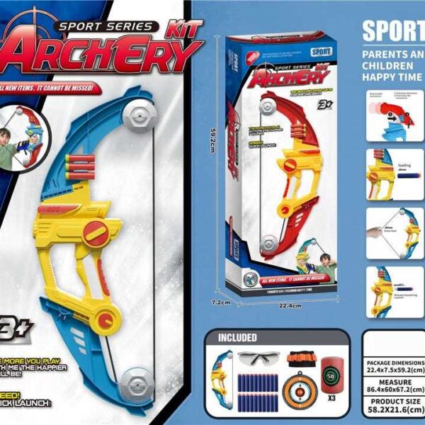 Παιδικό σετ τοξοβολίας με μεγάλο τόξο, βέλη με βεντούζα, ταμπλό στόχου και αξεσουάρ. Εντυπωσιακός σχεδιασμός, ανθεκτική κατασκευή και εργονομική λαβή για να εξασκήσεις τις ικανότητές σου και να γίνεις ο καλύτερος του αθλήματος!