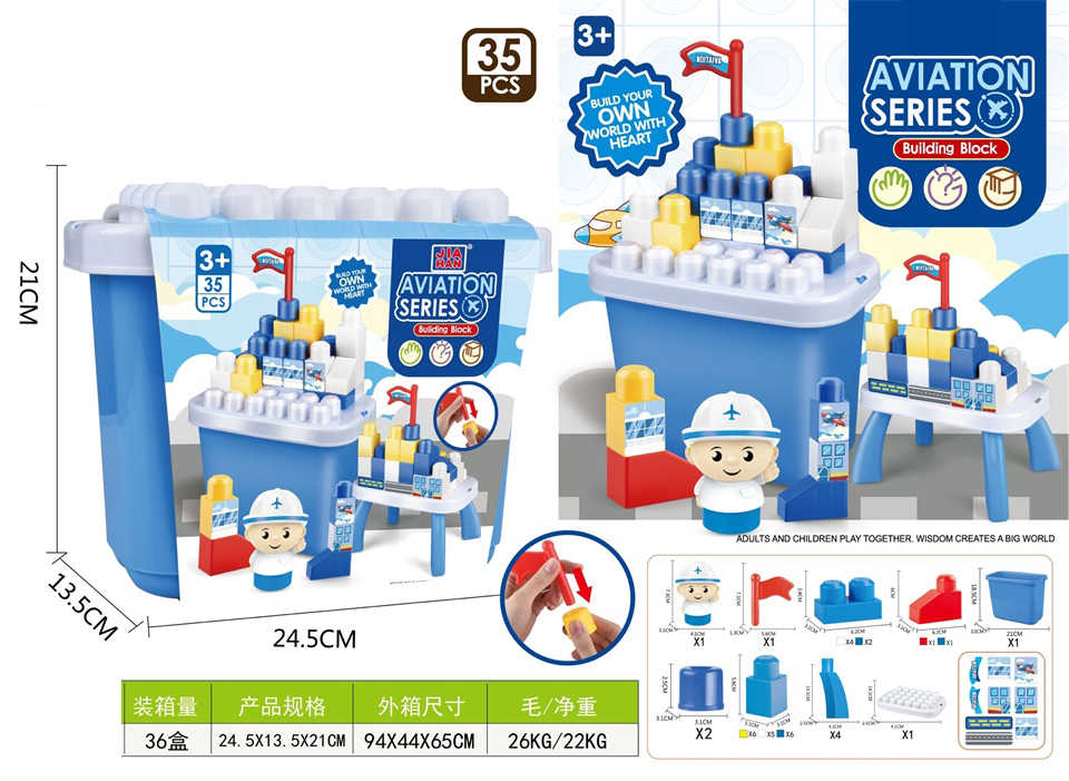 Περιλαμβάνονται συνολικά 35 τεμάχια τουβλάκια και αξεσουάρ, καθώς και θεματικά αυτοκόλλητα.