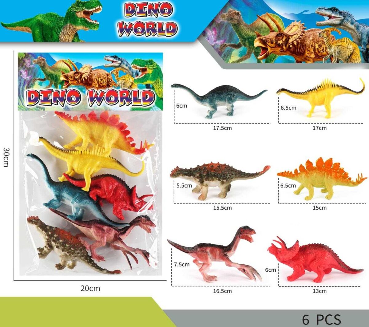 Σετ 6 φιγούρες δεινοσαύρων διαφορετικών ειδών, με ρεαλιστικό σχεδιασμό, για τους μικρούς λάτρεις των δεινοσαύρων.