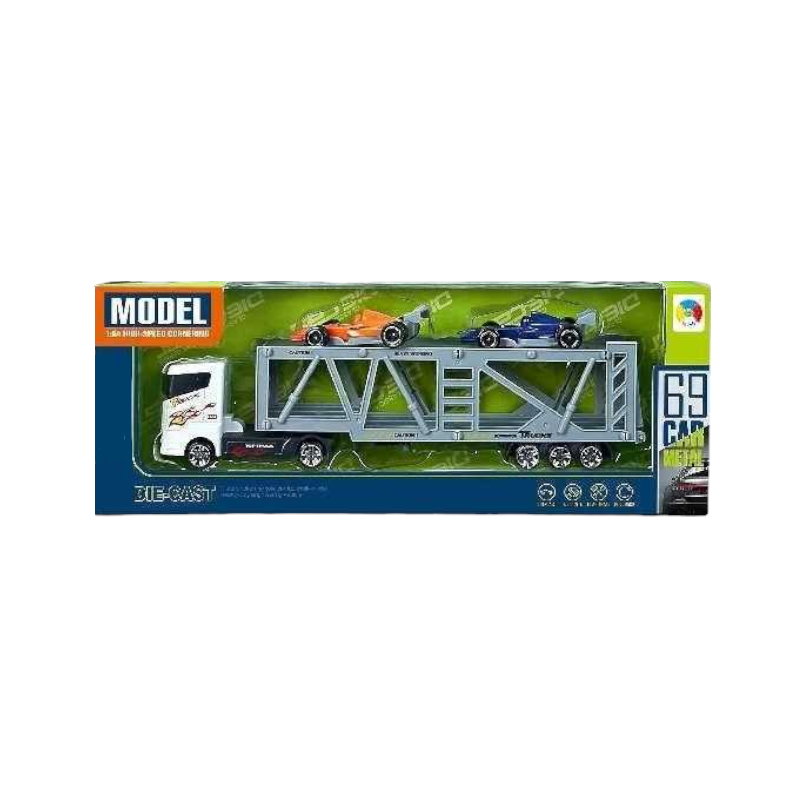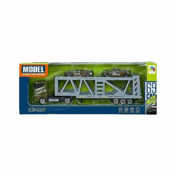 Σετ όχημα μεταφοράς αυτοκινήτων-πάρκινγκ με 2 μεταλλικά αυτοκινητάκια.