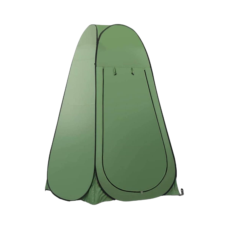 Σκηνή camping αποδυτήριο-ντουζ με ανθεκτικό σκελετό, πολύ εύκολη στο στήσιμο. Πανί από 100% αδιάβροχο πολυεστερικό ύφασμα και αδιάβροχη βάση. Διαθέτει αεριζόμενη οροφή, ιμάντα-κρεμάστρα στο εσωτερικό και πορτάκι με φερμουάρ.