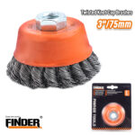 Συρματόβουρτσα καμπάνα στριφτή για γωνιακό τροχό – 3″/75mm – Finder – 196596