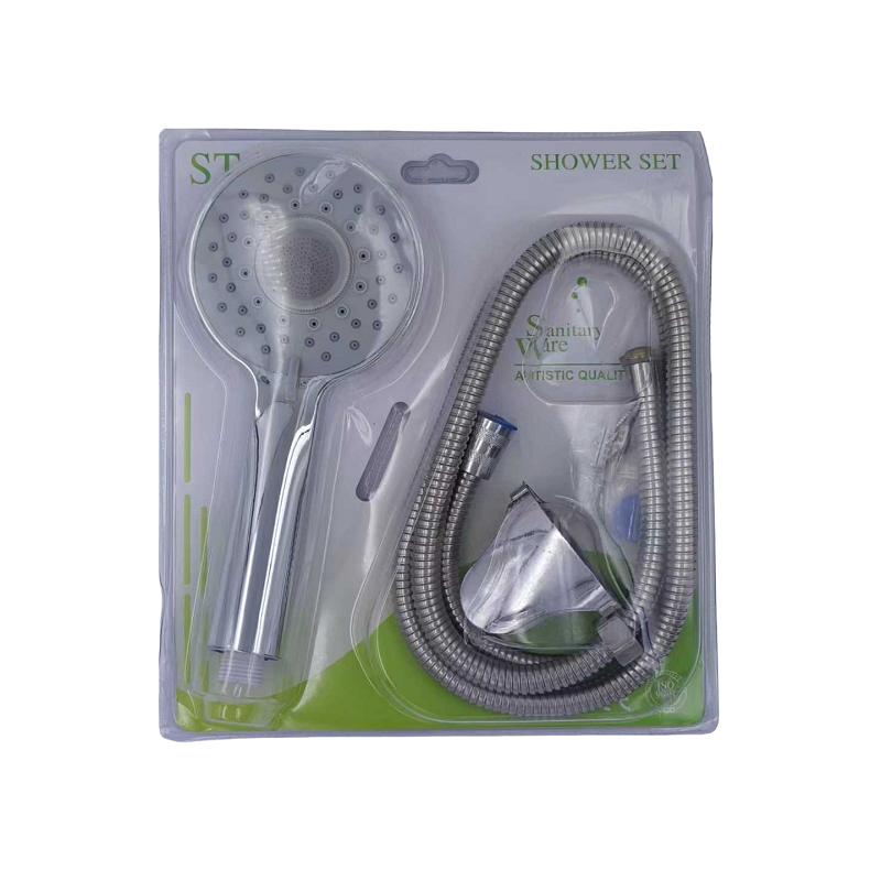 Τηλέφωνο-ακροφύσιο ντουζιέρας με 3 επιλογές πίεσης και σπιράλ σωλήνα μήκους 1.5 μέτρου, με επιτοίχια βάση και όλα τα παρελκόμενα τοποθέτησης.