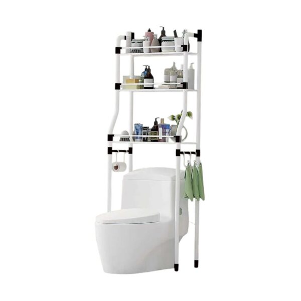 Πλαστική τηλεσκοπική ραφιέρα μπάνιου με εύκολη τοποθέτηση χωρίς βίδες και ρυθμιζόμενο ύψος από 1 έως 2.6m.
