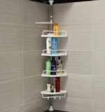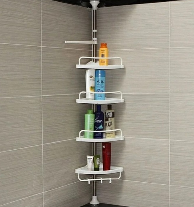 Πλαστική τηλεσκοπική ραφιέρα μπάνιου με εύκολη τοποθέτηση χωρίς βίδες και ρυθμιζόμενο ύψος από 1 έως 3.2m.