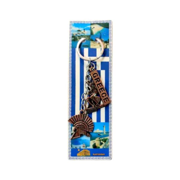 Τουριστικό μπρελόκ Souvenir Greece, κατασκευασμένο από ανοξείδωτο ατσάλι και υψηλής ποιότητας υλικά, με εντυπωσιακά ανάγλυφα σχέδια που αντιπροσωπεύουν την Ελλάδα. Πακέτο 12 τεμαχίων. Μήκος: περ. 12cm.