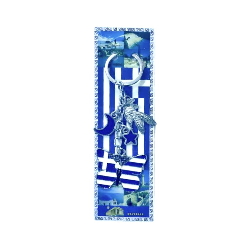 Τουριστικό μπρελόκ Souvenir Greece, κατασκευασμένο από ανοξείδωτο ατσάλι και υψηλής ποιότητας υλικά, με εντυπωσιακά ανάγλυφα σχέδια που αντιπροσωπεύουν την Ελλάδα.    Πακέτο 12 τεμαχίων.   Μήκος: περ. 12cm.