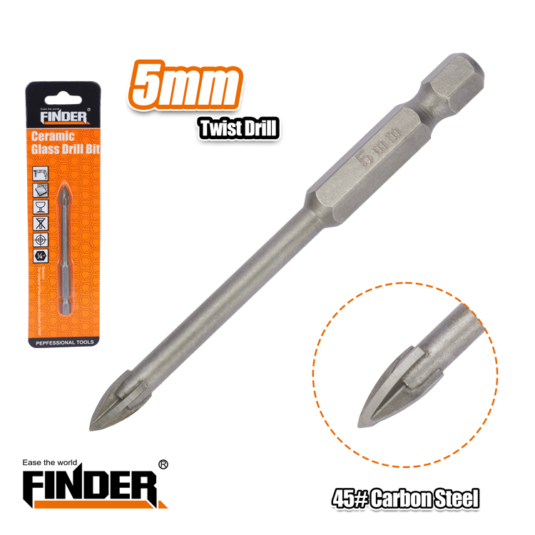 Τρυπάνι τετράκοπο γυαλιού και πλακιδίων της Finder, κατασκευασμένο από ατσάλι #45 Carbon Steel. Μέγεθος: 5mm.