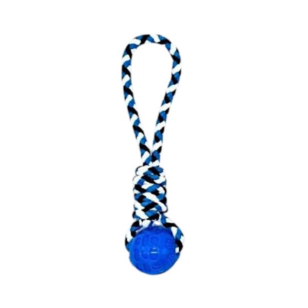 Παιχνίδι σκύλου πλεκτό σχοινί με μπάλα, κατασκευασμένο από ιδιαίτερα ανθεκτικό ελαστικό ύφασμα, μη τοξικό, ιδανικό για πολλαπλά είδη παιχνιδιού και άσκησης. Θα γίνει το αγαπημένο καθημερινό παιχνίδι που το σκυλί σας θα λατρέψει.