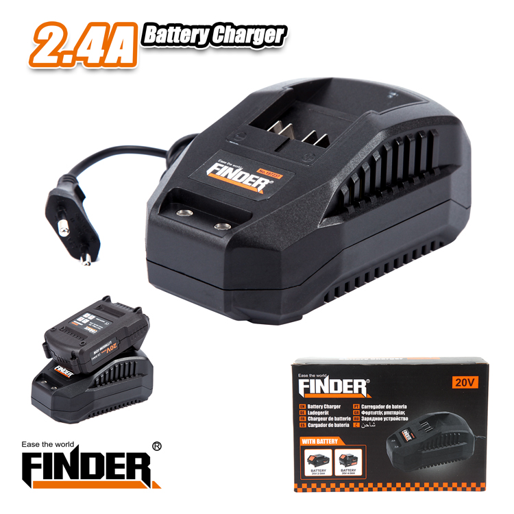 Φορτιστής μπαταρίας Λιθίου – 20V – 2.4A – Finder. Τάση: 220-240V, Συχνότητα: 50/60HZ, Χρόνος φόρτισης: 1.2 ώρες για μπαταρία 2000mAh, 2.5 ώρες για μπαταρία 4000mAh.