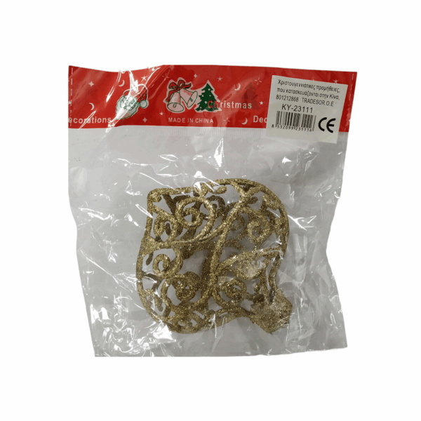 Χριστουγεννιάτικo στολίδι 3D σε πανέμορφο σχεδιασμό, με λαμπερή χρυσόσκονη και ιδιαίτερες λεπτομέρειες.1 τεμάχιο.Διαστάσεις: 10cm.