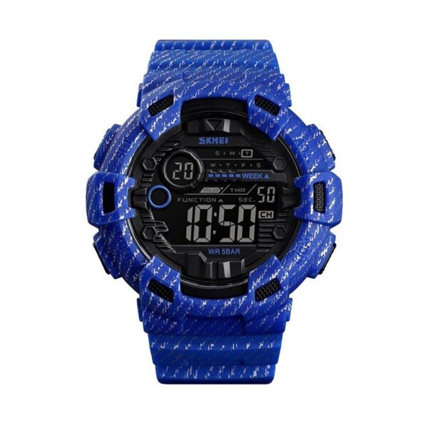 Ψηφιακό ρολόι χειρός Skmei με εξαιρετικό σπορ design και στυλ που ταιριάζει σε κάθε ύφος και διάθεση. Χαρακτηριστικά: Άνετη εφαρμογή, Αντοχή υγρασίας, Καπάκι μπαταρίας από ανοξείδωτο ατσάλι, Μήκος λουριού: 20cm, Διάμετρος καντράν: 40mm, Backlight, Βασικές λειτουργίες: Ημερομηνία, Ώρα, Χρονομέτρηση.